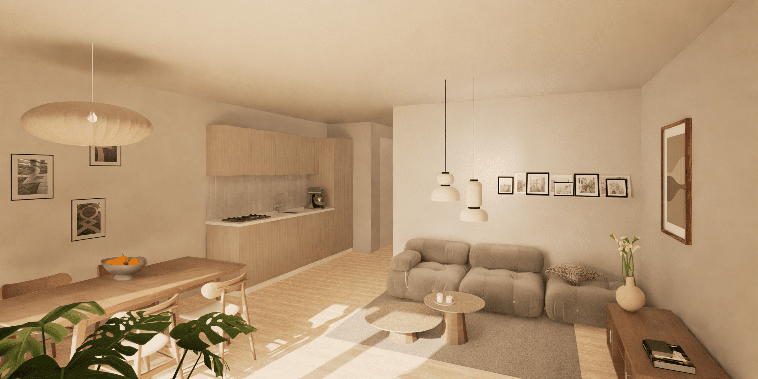 Vanaf de Raalterweg, direct aan de linker kant staat een mooi woongebouw met vier beneden- en vijf bovenwoningen. De benedenwoningen zijn efficiënt ingedeeld met een ruime living en open keuken, een grote slaapkamer met aangrenzende badkamer en een tweede slaap-, hobby- of werkkamer. Ook is er een berging. En aan de achterzijde een vrije tuin.
