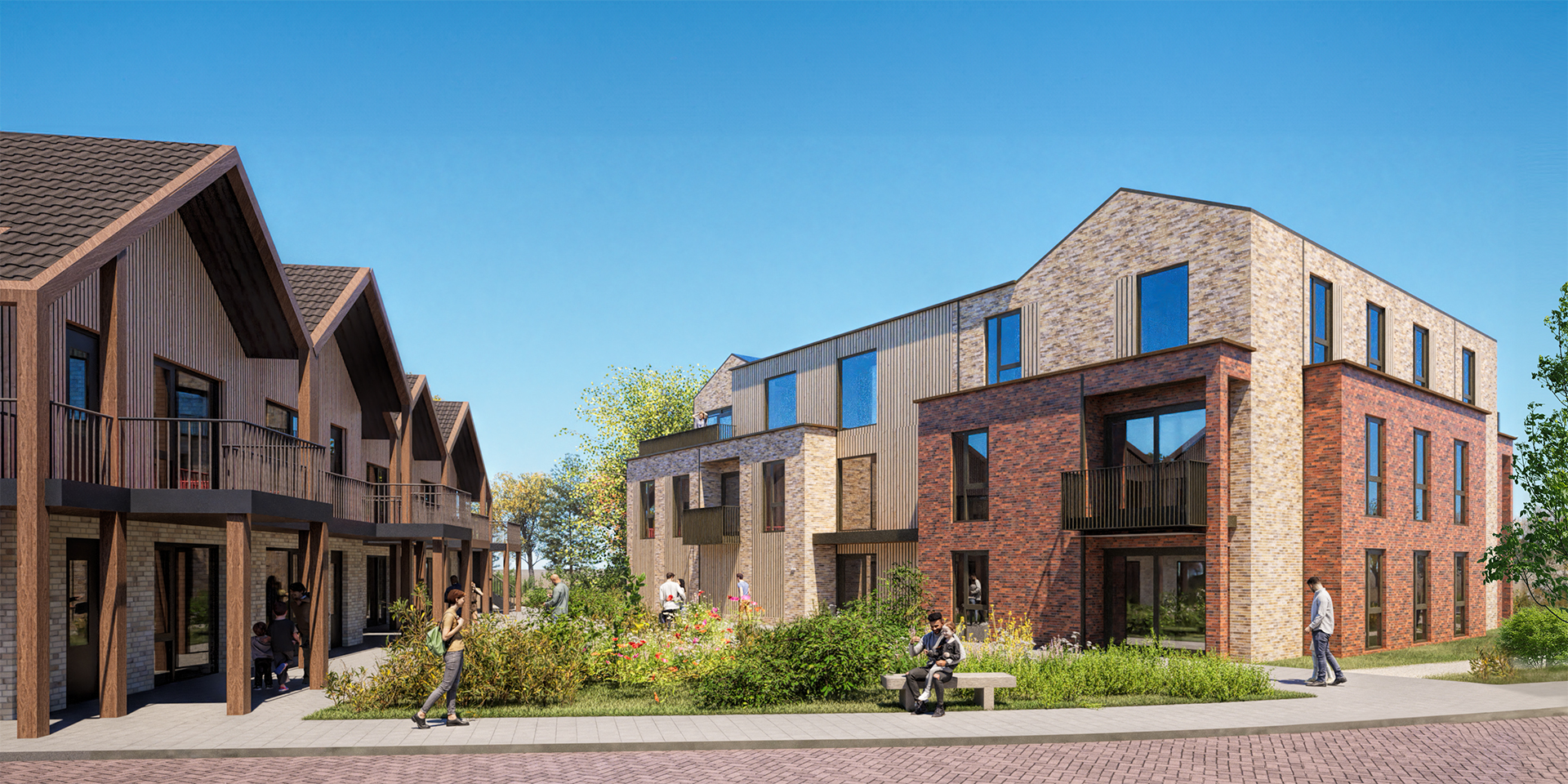 Op de eerste verdieping bevinden zich vijf ruime appartementen, gelegen aan een open binnentuin, die via trap en lift bereikbaar zijn. De appartementen hebben een ruime hal, een grote living met een bijzondere vormgeving, een open keuken, twee slaapkamers en een aparte ruimte voor wasmachine, droger en techniek.