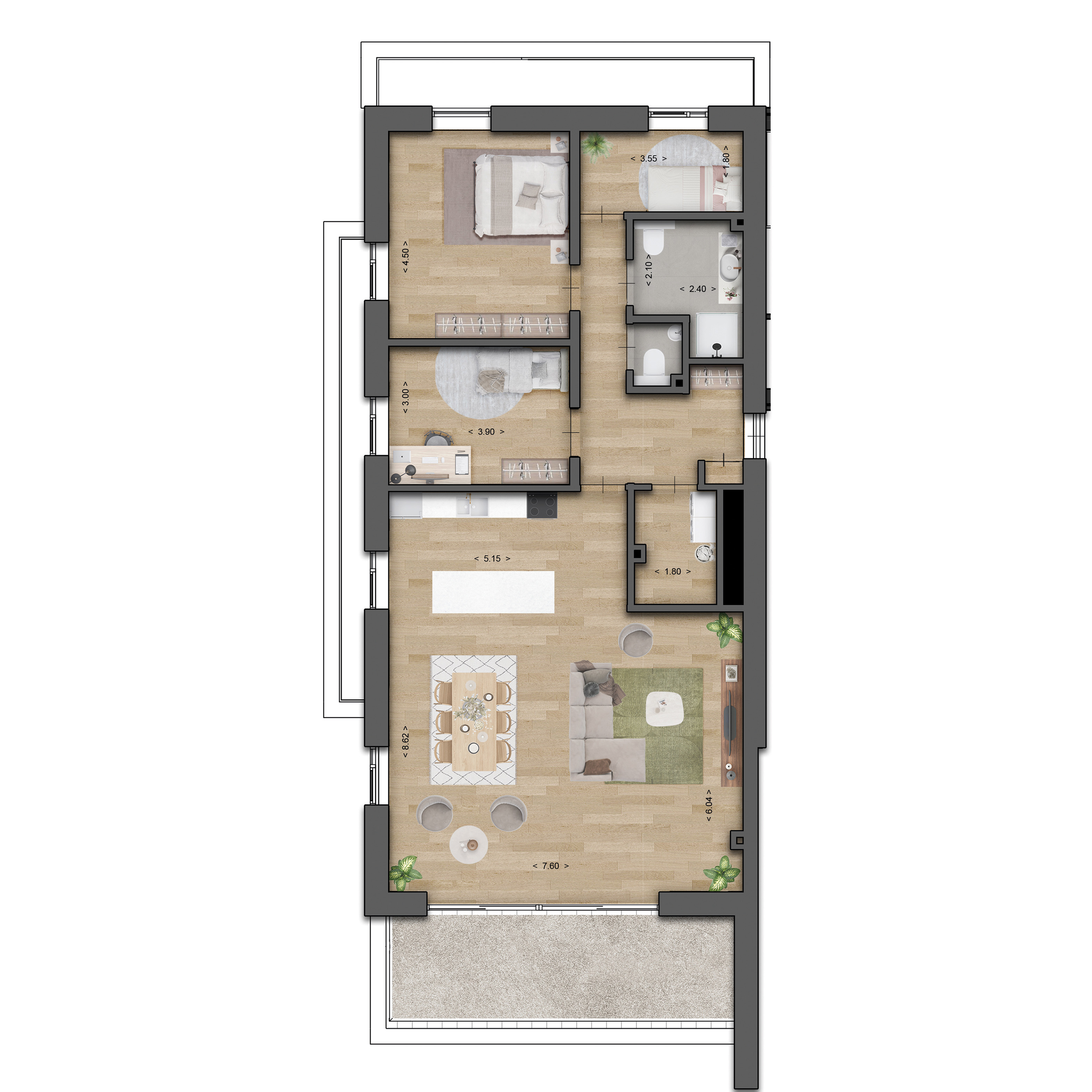 De drie penthouses vormen het hoogste punt van IJsseldal. Vanaf de riante balkons heb je een heerlijk uitzicht over IJsseldal, de Raalterweg en de rondweg in de verte. De penthouses zijn verschillend van vorm, maar hebben alle drie een ruime entree, een extra grote living en twee of drie slaapkamers. En ze zijn natuurlijk per trap en lift bereikbaar.